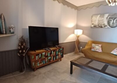 Salon lumineux avec TV écran plat et connexion Wi-Fi fibre optique