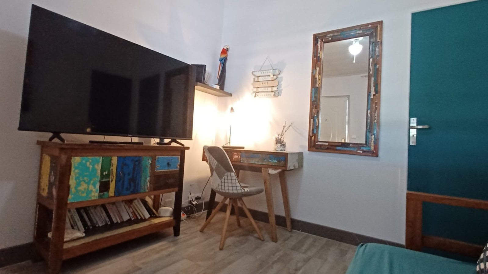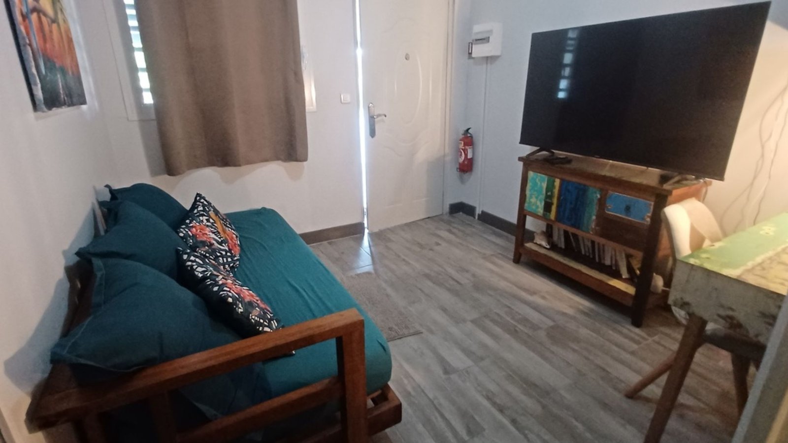 Salon avec TV écran plat, connexion Wi-Fi fibre optique, canapé convertible en lit d’appoint